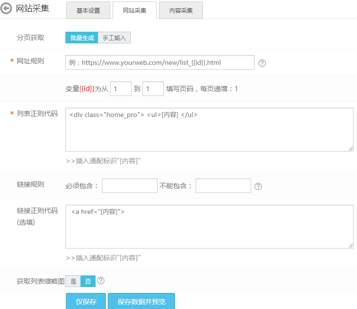 应用场景:站长仅需要设置好简单的正则任务即可完成测试至采集的过程。